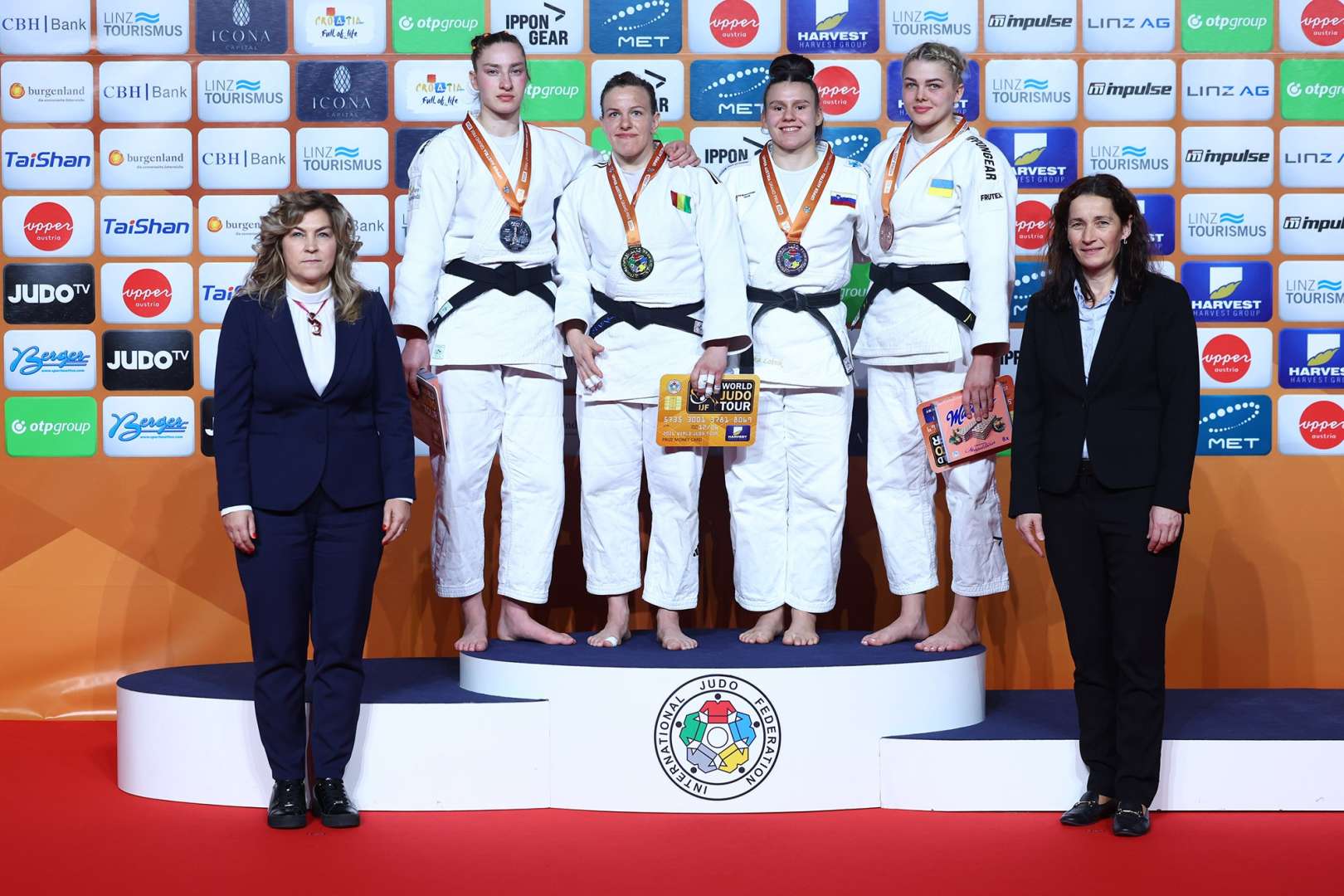 Just after the halfway point the Guinean judoka attacked again and the penalties began to arrive on Derks’ side of the scoreboard, two of them. Branser knew the gold was within reach. The contest moved into extra time but Branser kept her focus and after just 30 seconds threw Derks with a seoi-otoshi. The score was given and she punched the air in celebration. This is not only her first gold medal on the World Judo Tour but a first grand prix gold ever for Guinea.