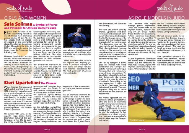Through stories of resilience, leadership and inspiration, the magazine illustrates how deeply women are woven into the fabric of judo. From coaches and leaders to athletes and educators, their contribution continues to shape the development of the sport and the communities it touches.