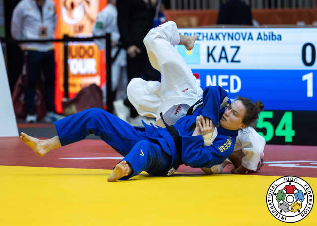 At -48 kg, twenty-year-old Vera Wandel (NED), an EYOF and u23 European champion, earned a full set of scores against world number one Abiba Abuzhakynova (KAZ) in their quarter-final. A makikomi for ippon sealed the deal but it was an onslaught the Kazakh champion could have expected. This is Wandel’s first event on the World Judo Tour and no matter the final outcome, a semi-final appearance is an outstanding effort.