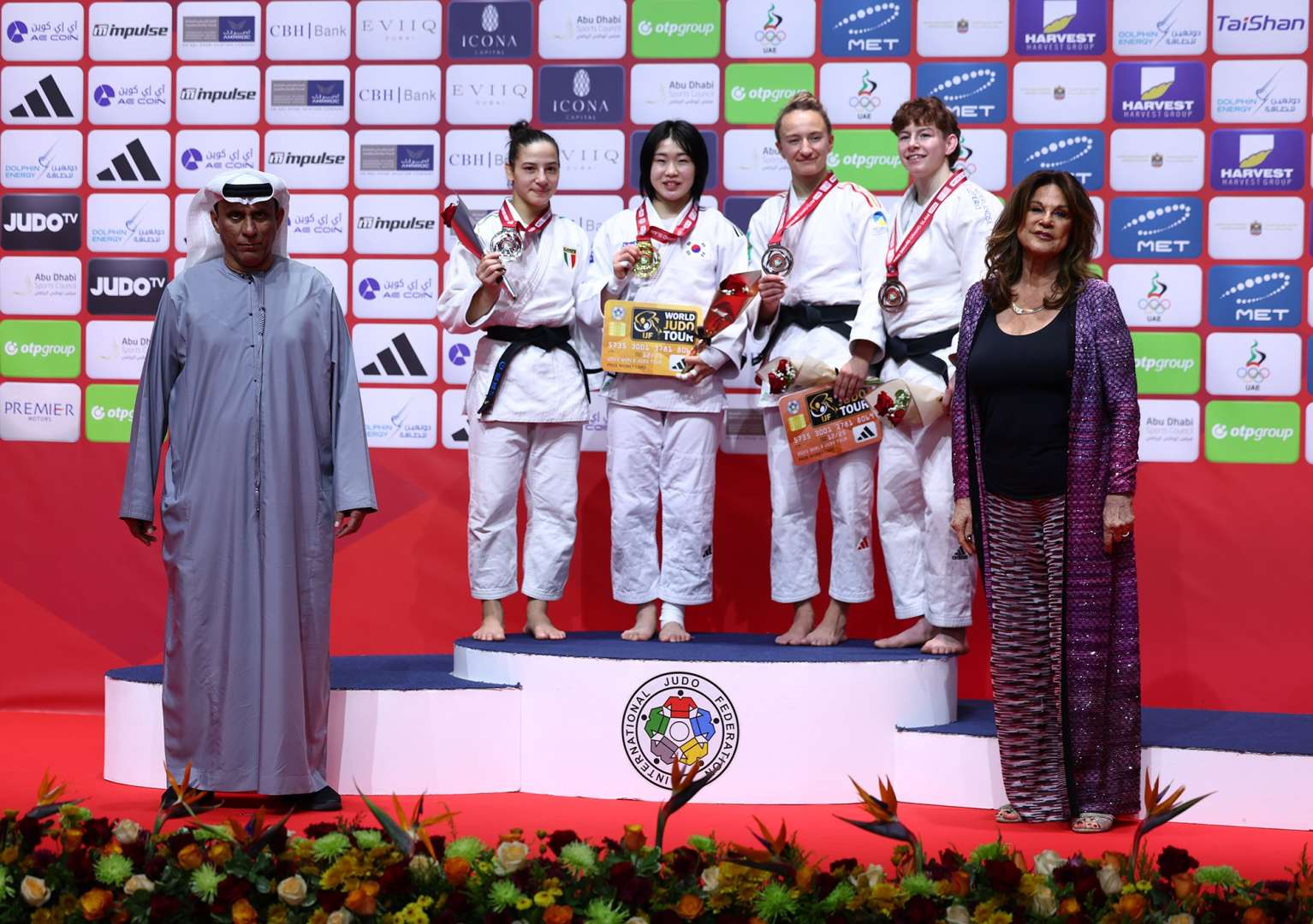 Medals, cheques and flowers were presented by H.E Mohammed Bin Tha'aloob Al Darei, President of the UAE Judo Federation, and Ms Tania Missoni, Board Member of Missoni Ltd.