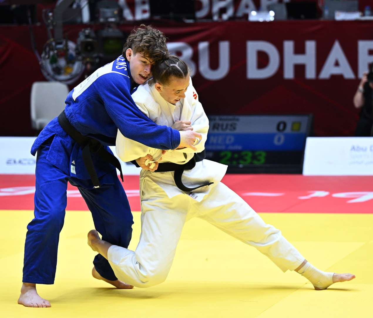 Natalia Elkina (RUS) faced Julie Beurskens (NED) in the second bronze medal contest. The medal ultimately went to the Netherlands, with Beurskens securing a controlled and tactical victory.