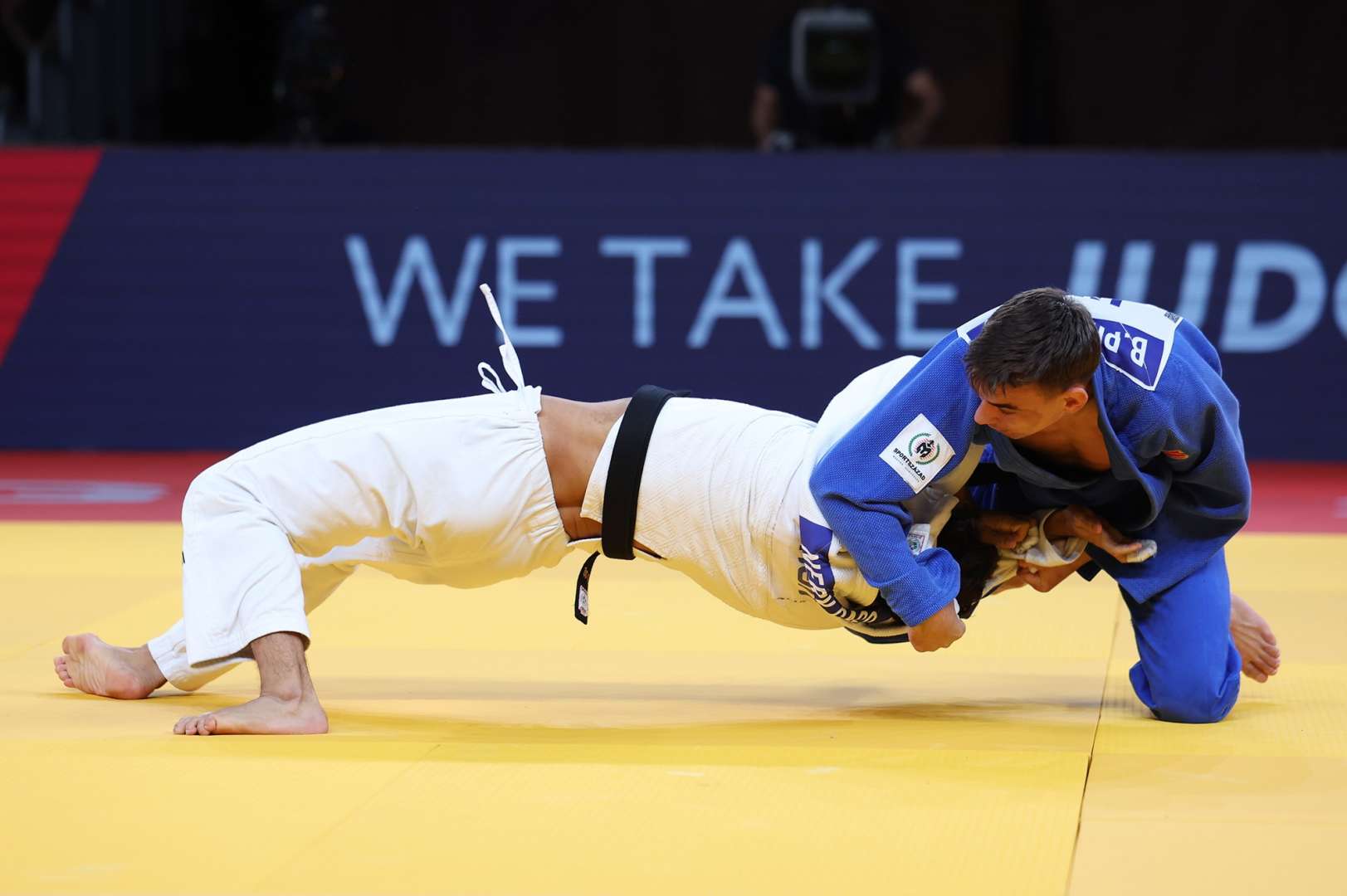 However, the first 30 seconds of the contest began with a huge pick-up at the hips and a full roll through the air, forwards, with no feet on the ground; Yotov had made another mistake and scrambled to ensure it wouldn’t be catastrophic. A waza-ari was registered for the Georgian but before Nadiradze or the referee had time to blink, Yotov rectified his second mistake of the day by holding Nadiradze down. He managed to escape but not before an equalising waza-ari was called.