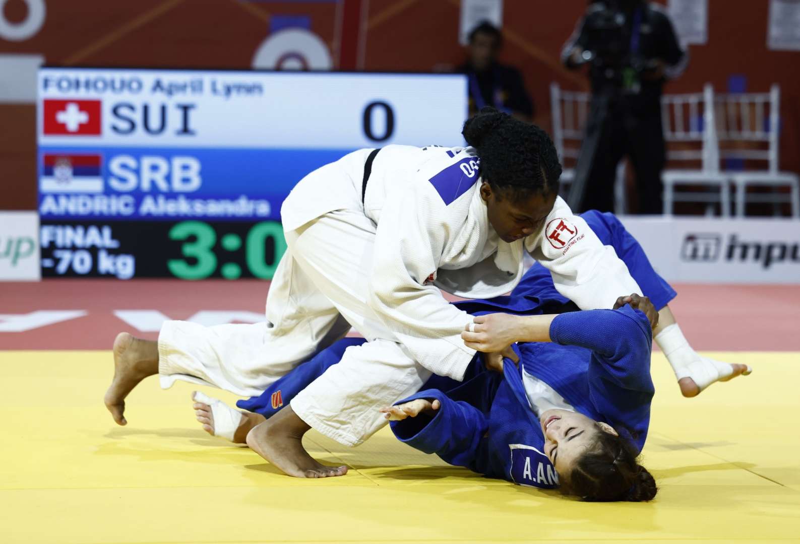 In the final, the contest was over almost as quickly as it began. In less than a minute, April Lynn Fohouo executed a perfectly timed sasae-tsuri-komi-ashi, throwing her opponent onto her back powerfully and with precision, speed, and control, all the ingredients of a flawless ippon. It was a stunning finish and a well-deserved gold medal for Switzerland.