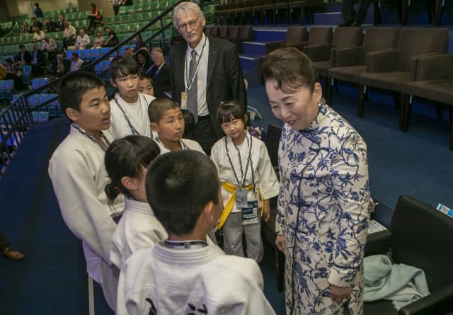 Ahead of the final block the crowd were treated to a display of Kodomo no kata from a group of children from the Kodokan who then had the opportunity to meet Her Imperial Highness Princess Tomohito of Mikasa who was appointed as an IJF Ambassador during the IJF gala on Friday.
