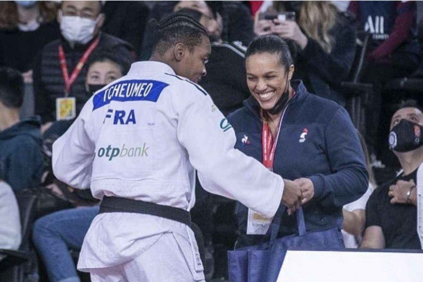 Audrey winning gold in Paris in 2022 with Lucie in the coaching chair.